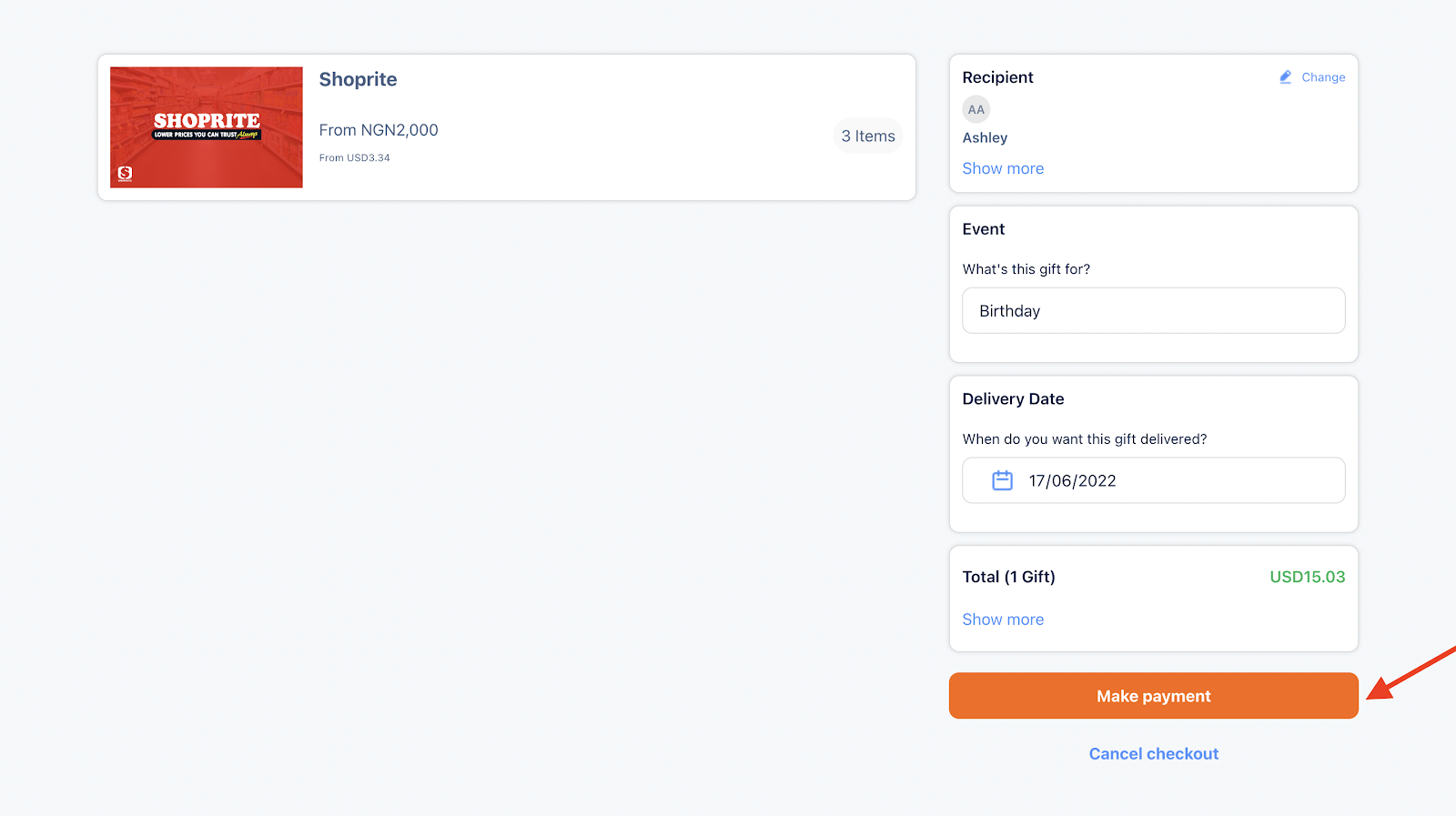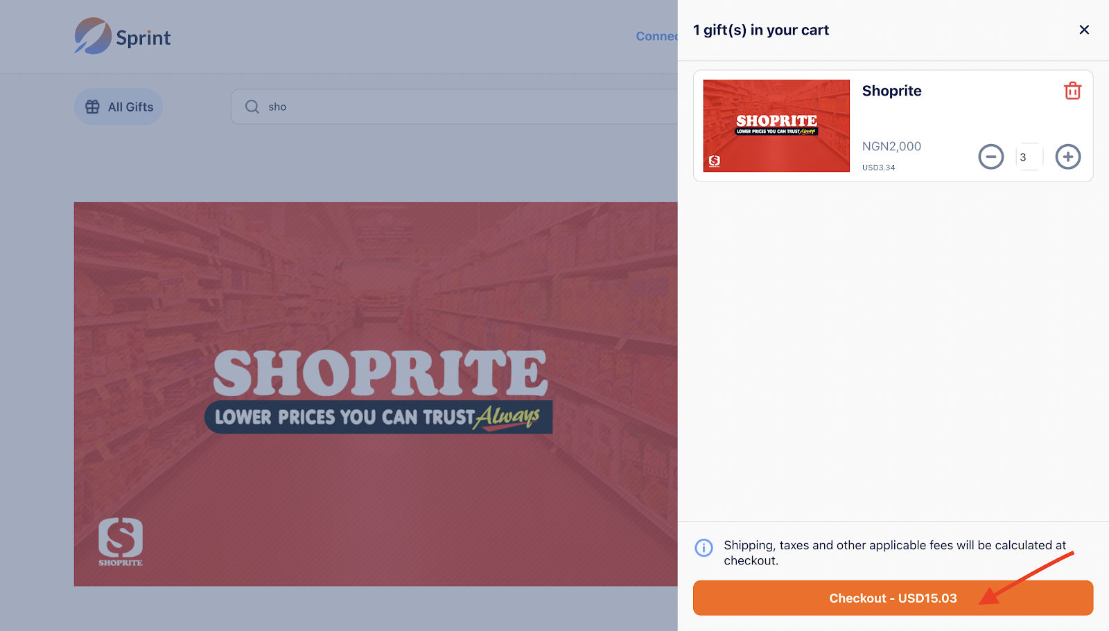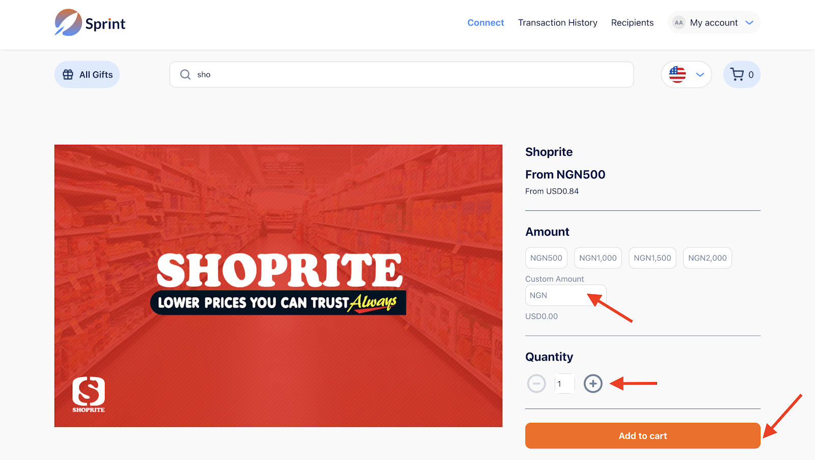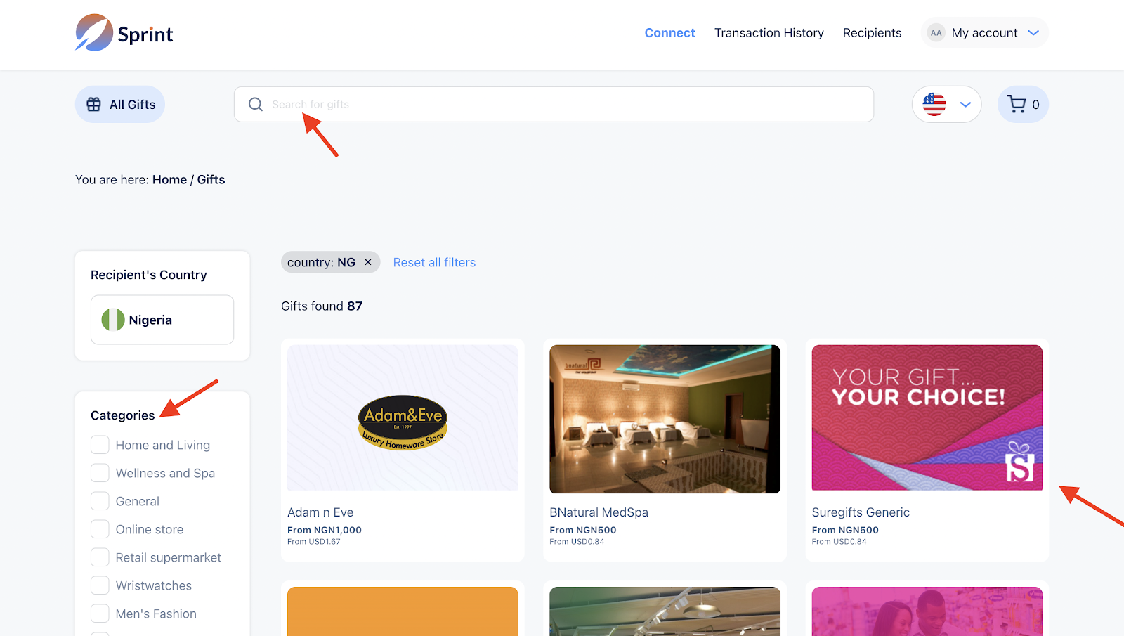 Step 6: Search and select the gift item(s) or vendor(s) you're purchasing from.