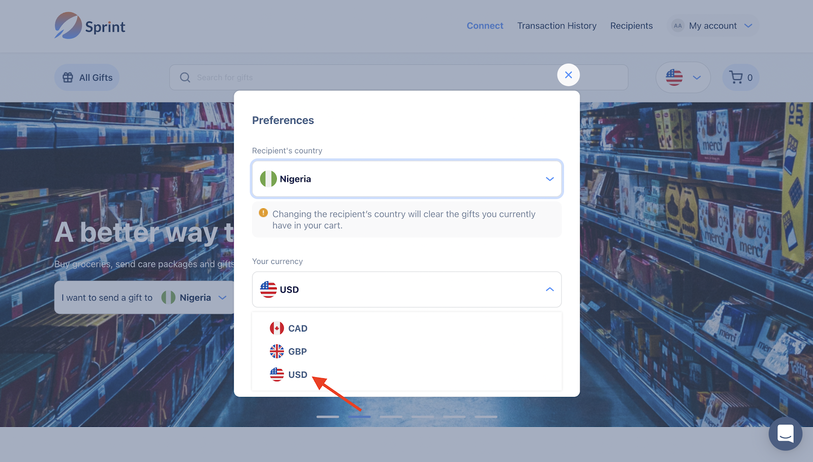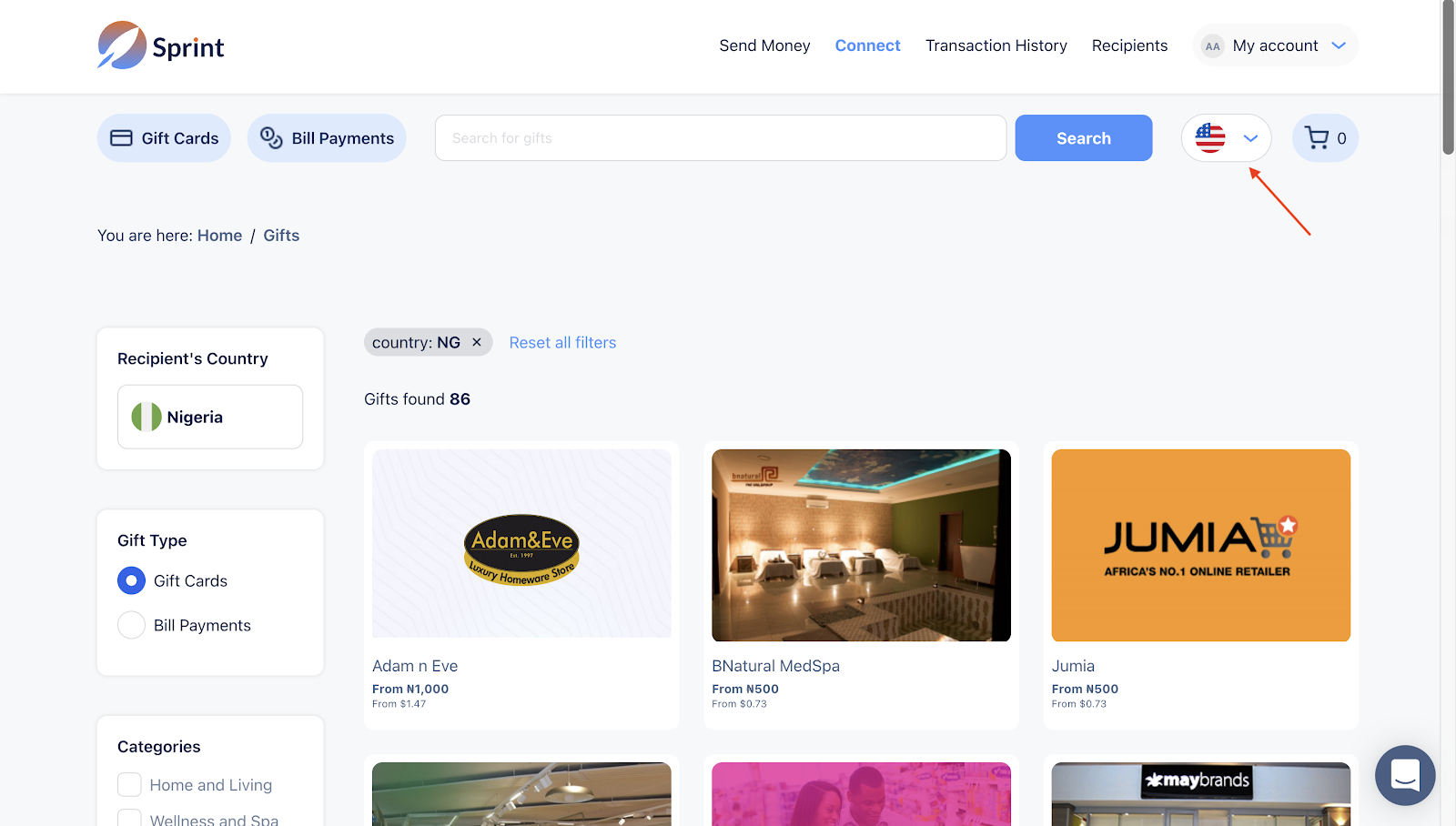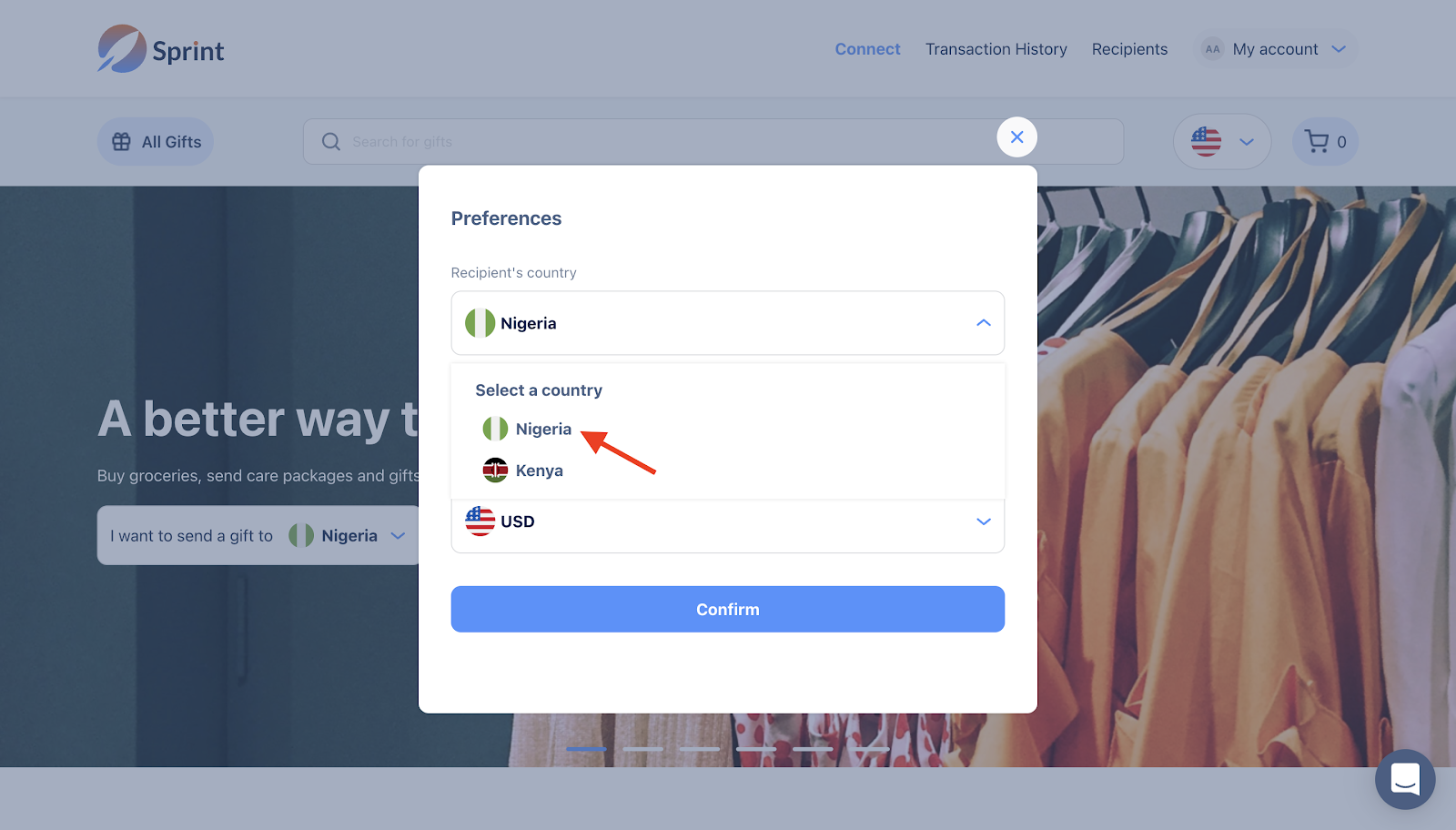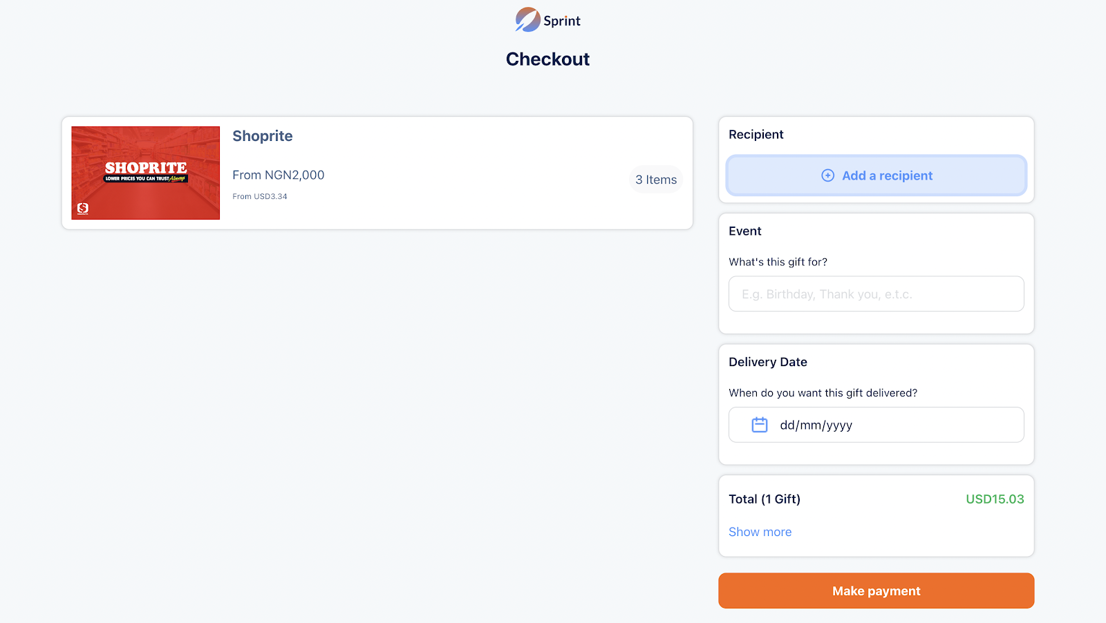 Step 6: Search and select the gift item(s) or vendor(s) you're purchasing from.
