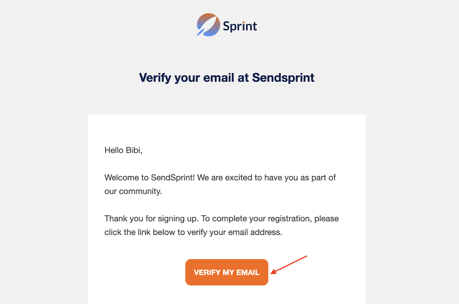 Step 4: Check your email inbox for a Welcome email from SendSprint. Click on "Verify my email".