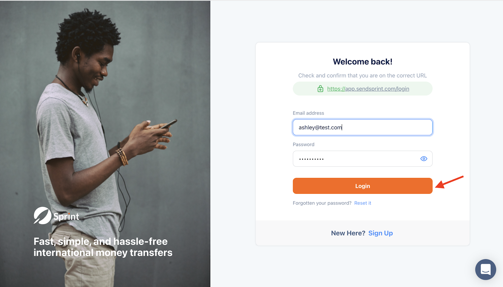 Step 6: Fill in the request information and click Login to access your SendSprint Profile.